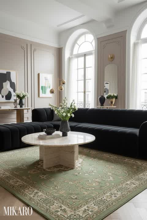 Art Deco Living Room: Styling a Midnight Blue Leather Sectional