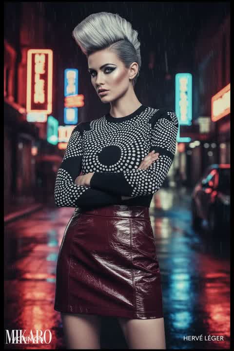 This outfit is a daring and intriguing mix of avant-garde and relaxed styles, making a strong fashion statement. The textures and prints create a captivating contrast.