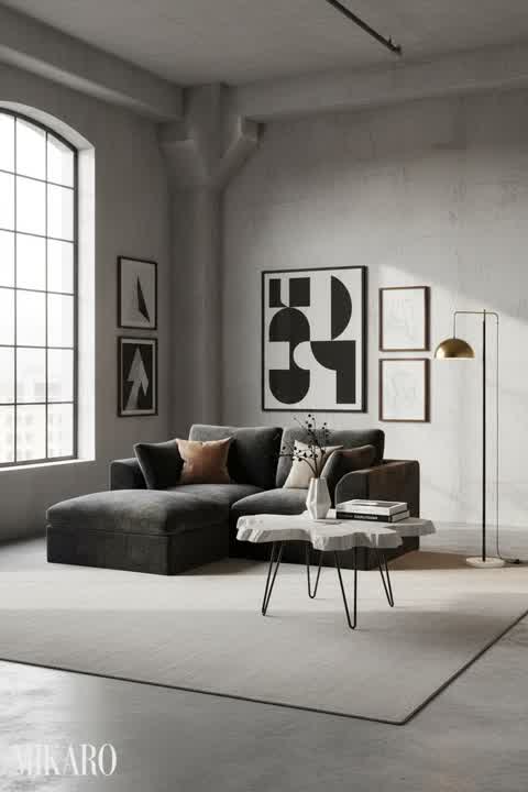 I believe this composition works surprisingly well, even though combining the organic feel of genuine leather with strict Bauhaus principles could be challenging. The moss green sofa provides a rich, natural anchor that softens the potentially stark lines of Bauhaus. The textured white canvas acts as a perfect counterpoint, adding visual interest without distracting from the clean aesthetic. The checkered vase, while playful, introduces a touch of classic charm without undermining the modern feel, especially when placed thoughtfully. The overall effect is one of sophisticated comfort and understated elegance, which I think aligns well with a refined, contemporary taste seeking a Bauhaus influence.
