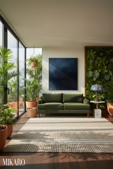 Biophilic: Lush Home Bar Oasis with High Ceilings