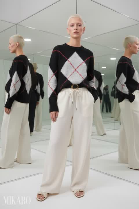 This outfit achieves a very cool and sophisticated aesthetic. The wide-leg pants paired with the oversized bomber jacket create a modern silhouette, perfectly complemented by the sleek sunglasses. It's a strong, confident look.