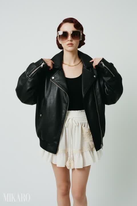 This outfit is a delightful blend of comfort and whimsy. The cardigan adds a touch of coziness, while the playful cherry print skirt brings a vibrant and unexpected element to the look.