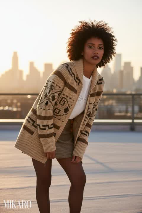 This outfit is a bold mix of textures, contrasting the cozy jacket with the sleek skirt. It's an interesting combination, though the styles don't perfectly harmonize. It certainly makes a statement!