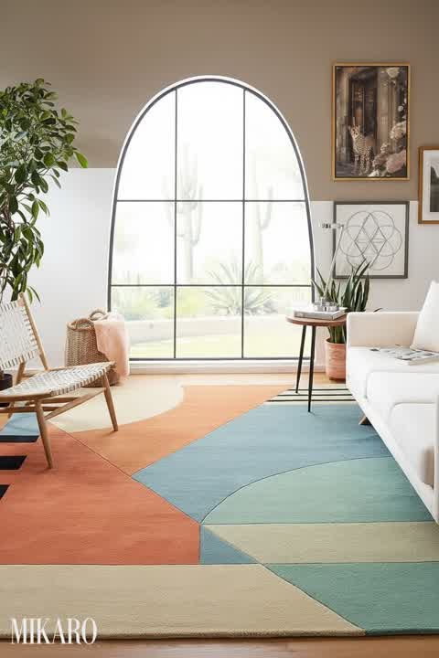 The created composition effectively integrates the specified products into an Eclectic design. The abstract art piece harmonizes well with the creamy travertine coffee table and the green onyx vase, creating a balanced interplay of natural materials and artistic expression. The overall aesthetic is cohesive and luxurious, though the abstract art might be slightly understated given its size, potentially blending into the background rather than commanding attention as a singular 'hero' piece. The subtle placement, however, fits the brief for discreet product integration, making it feel organic rather than overtly staged.