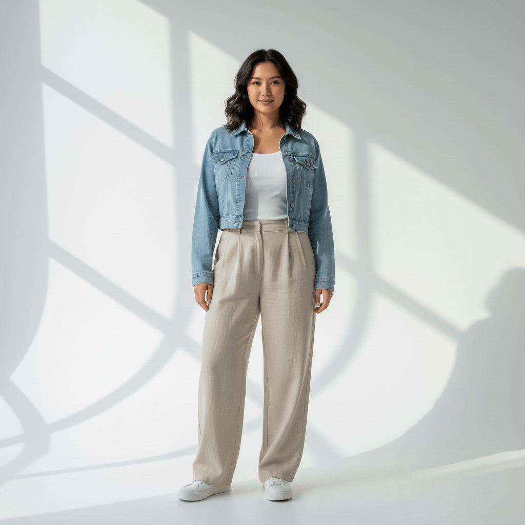 Switch from a clean studio look to urban streetwear in seconds. Adjust the fit from tailored to oversized.