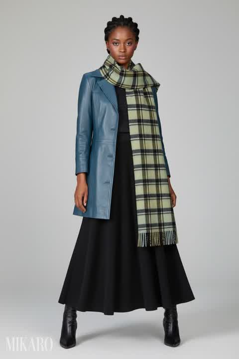 This outfit blends classic sophistication with modern comfort seamlessly. The rich textures of the leather blazer and knit skirt create a luxurious feel, while the sunglasses add a cool, contemporary edge.