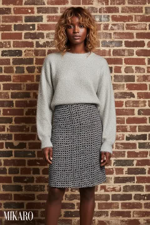 This outfit creates a bold contrast between the soft, shimmering skirt and the crisp, structured blazer. It's a statement look that exudes confidence, though the combination might feel a bit unconventional for some occasions.