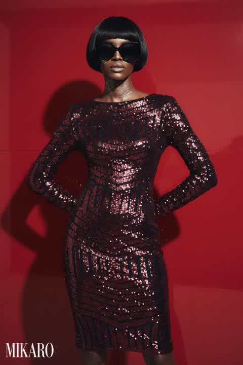 This outfit brilliantly blends comfort and edgy glam. The oversized tunic with the shiny skirt creates a captivating contrast.