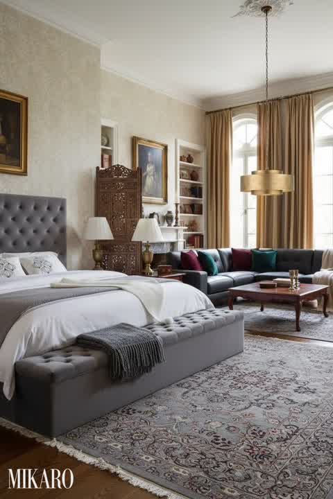 This Traditional design excels by masterfully blending scale and texture. The large wagon wheel chandeliers serve as stunning focal points, anchoring the high ceilings while providing ample light. The rich texture of the hand-hooked wool rug grounds the seating arrangement and introduces a subtle, luxurious pattern that complements the solid leather upholstery without overwhelming it. The fluted vases add a touch of handcrafted elegance, contributing to the layered and curated feel essential for a truly sophisticated Traditional interior.