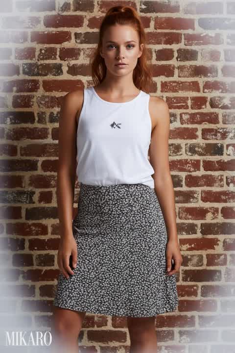 Grunge Glam: Satin Top & Houndstooth Mini Skirt