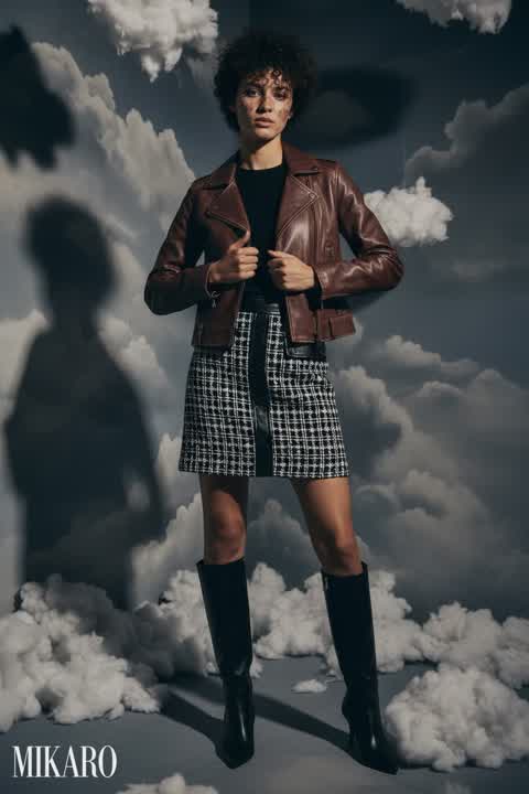 The combination of textures and patterns creates an unexpectedly sophisticated and edgy look. Very stylish!