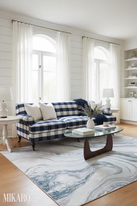 Hamptons: Timeless Serenity in Ivory & Coastal Hues Living Room