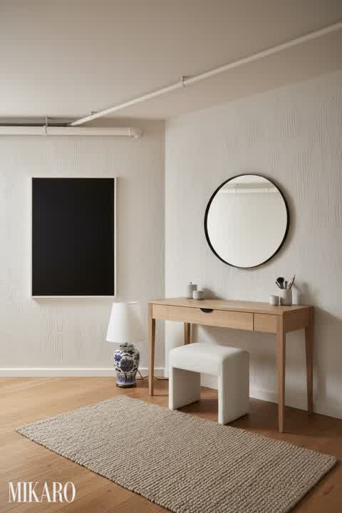 Japandi: Dorm Room Balcony Transformation with Boucle Chairs & Chandelier