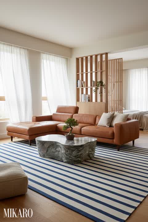 Japandi Open Plan Living: Modern Urban Sanctuary with Integrated Zones and Minimalist Design