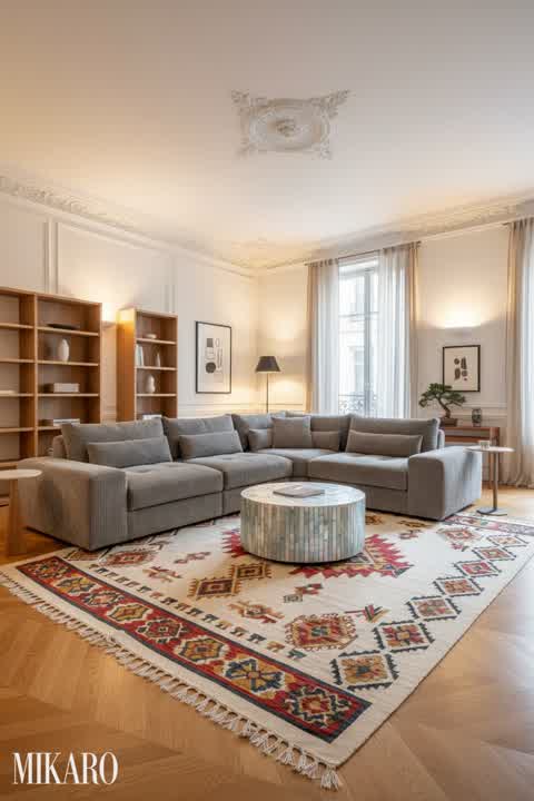 The composition successfully blends the requested elements into a cohesive Japandi aesthetic, particularly within the challenging narrow townhouse setting. The natural light and material choices elevate the overall design, creating a surprisingly spacious feel. The contrast of the cognac leather with the soft white table and natural wood accents works exceptionally well, proving that careful selection can make diverse pieces harmonize.