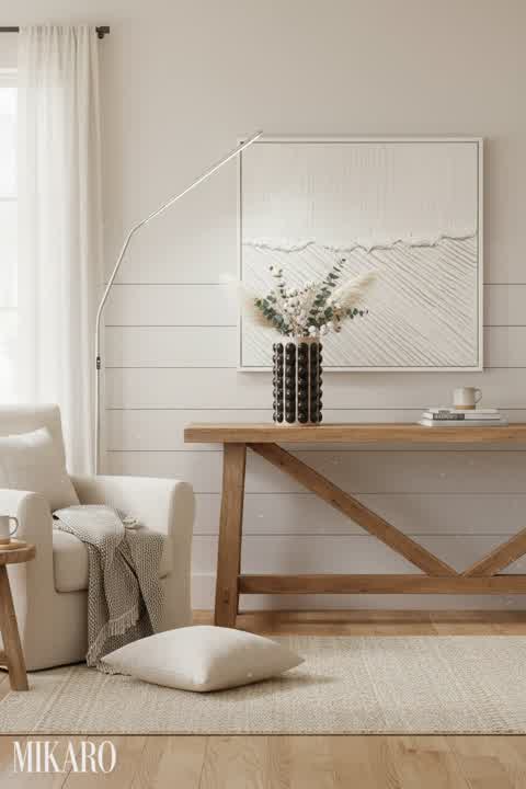 This style works exceptionally well by juxtaposing the clean lines and plush texture of the modern velvet bed with the distressed, earthy tones of the table lamps and the rich, natural leather of the loveseat. The inherent warmth and simplicity of Modern Farmhouse elements, such as shiplap walls and exposed wooden beams, provide a perfect backdrop that allows these distinct pieces to feel cohesive and elevated, rather than disparate. The combination creates a balanced aesthetic that is both sophisticated and inviting.