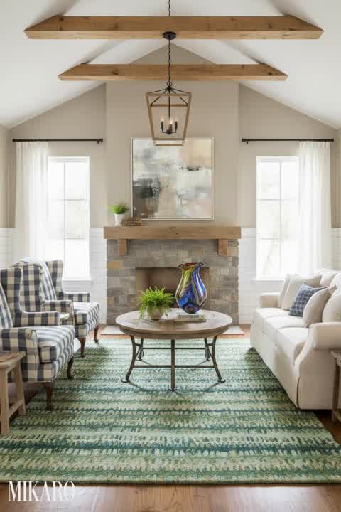 Modern Farmhouse Living Room: Textured Art & Warm Comfort