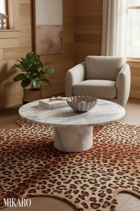 The envisioned composition blends rustic elements with glamorous touches, which can be a challenging juxtaposition. The large crystal chandelier and the elegant floral wall art introduce a luxurious sparkle that might feel a little out of place against the more subdued and natural textures typical of a Modern Farmhouse design. While both elements are beautiful individually, their combination in this specific context could create a slight visual tension, leaning more towards a 'Farmhouse Glam' rather than a pure Modern Farmhouse aesthetic. However, for a user actively seeking to infuse a bit of unexpected opulence into a rustic setting, this could be a highly appealing and unique take. The leather rug, with its varied tones, successfully bridges the gap between the natural wood and the more refined elements, adding a sophisticated textural layer.