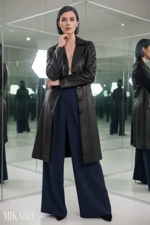This outfit blends classic elegance with casual comfort quite well. The silver hair and soft makeup add a modern touch, though the top feels slightly oversized for a petite frame.