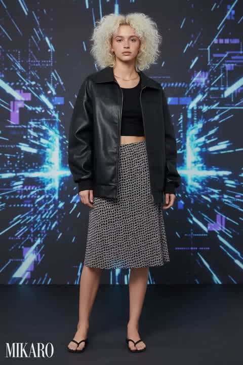 This outfit offers a striking contrast between casual comfort and a more structured denim piece. The accessories perfectly complement the edgy vibe, making it a surprisingly cohesive and stylish look.