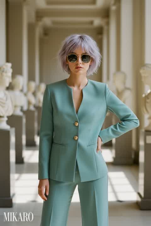 This outfit perfectly blends bold color with sophisticated accessories, creating a high-impact fashion statement. The cat-eye glasses add a playful yet elegant touch to the classic red dress.