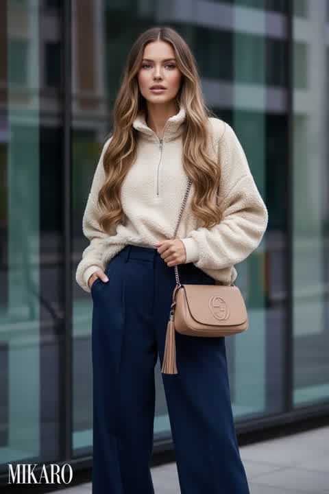 This outfit perfectly blends comfort with understated chic. The cable knit set looks incredibly cozy, and the sunglasses add a touch of cool sophistication. It's a great example of elevated loungewear.
