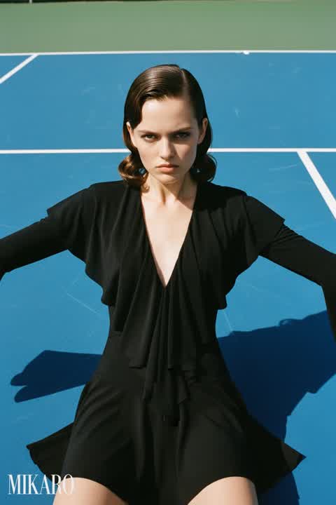 This outfit is a striking combination of elegance and modern edge. The sheer elements add a touch of allure, while the sunglasses provide a cool, sophisticated finish.