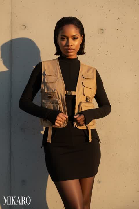 Sleek Leather Ensemble with Denim Cap on White Studio Background