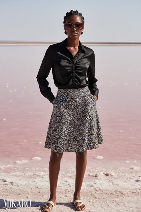 This outfit is a sophisticated blend of classic and modern, offering a chic and polished appearance. The textures work beautifully together.