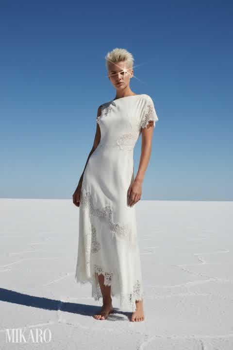 The classic dress with modern sunglasses creates a surprisingly cohesive and stylish look.