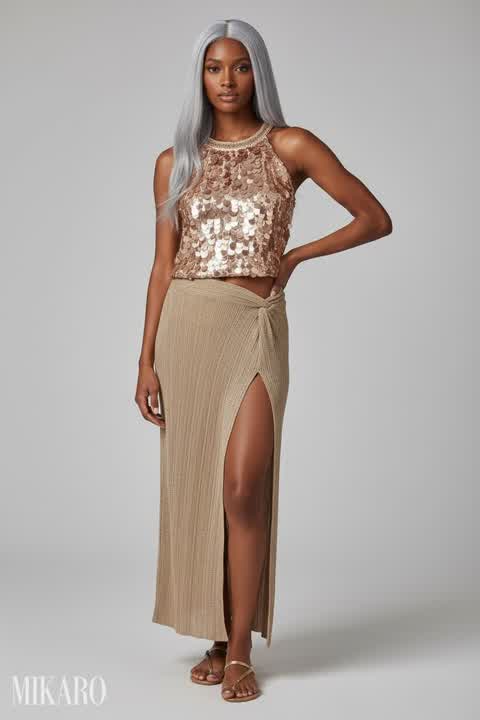 Sparkling Beach Stroll: Sequin Halter Top & Flowy Trousers