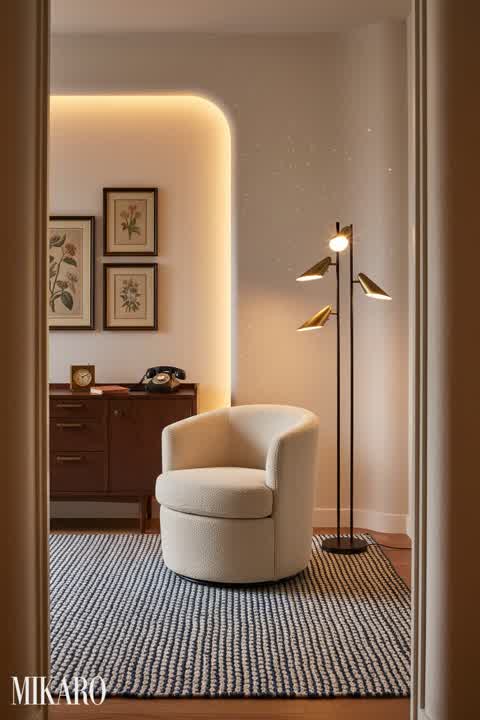 Vintage Balcony: Organic Plaster & Luxe Textures in a Flash-Lit Setting